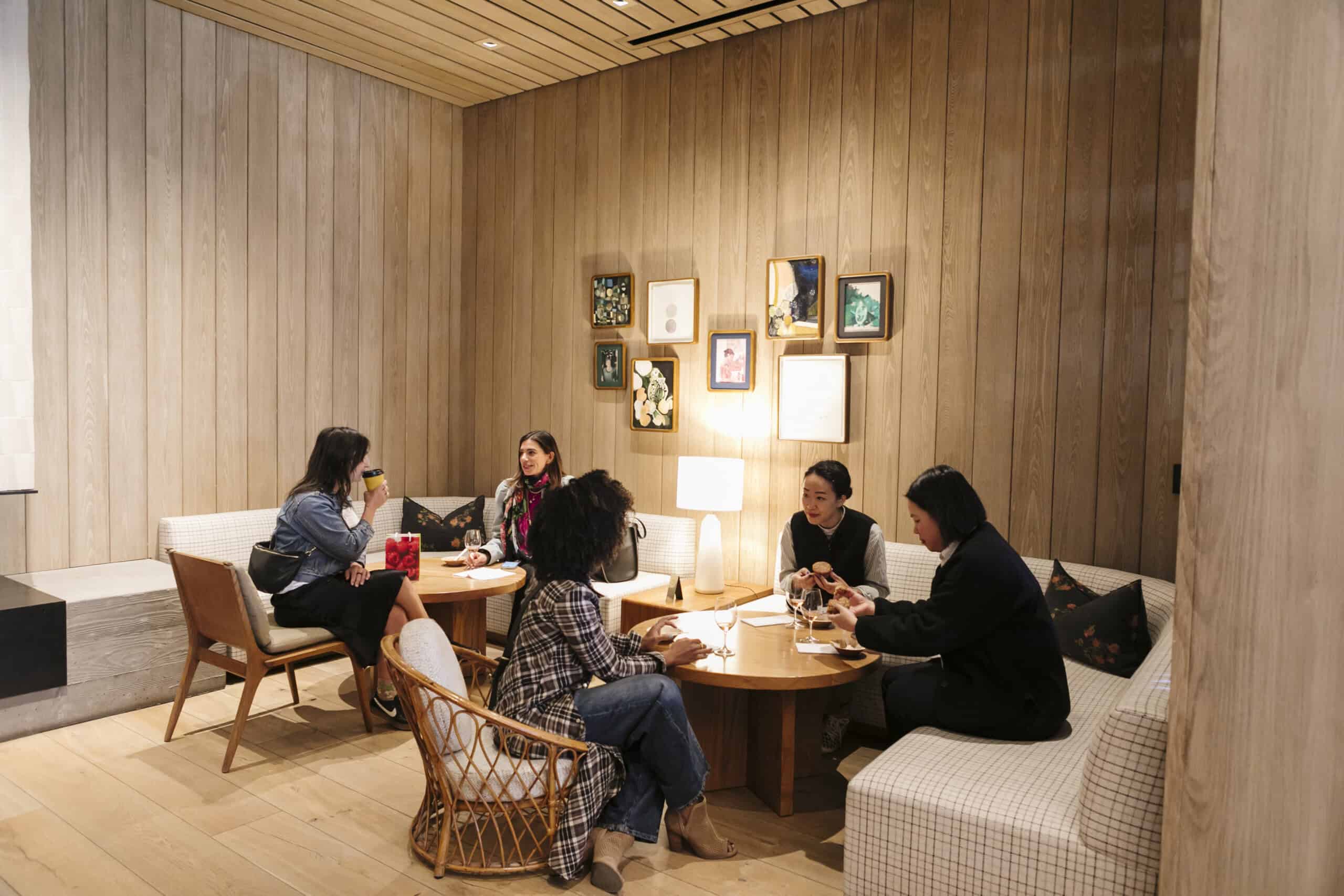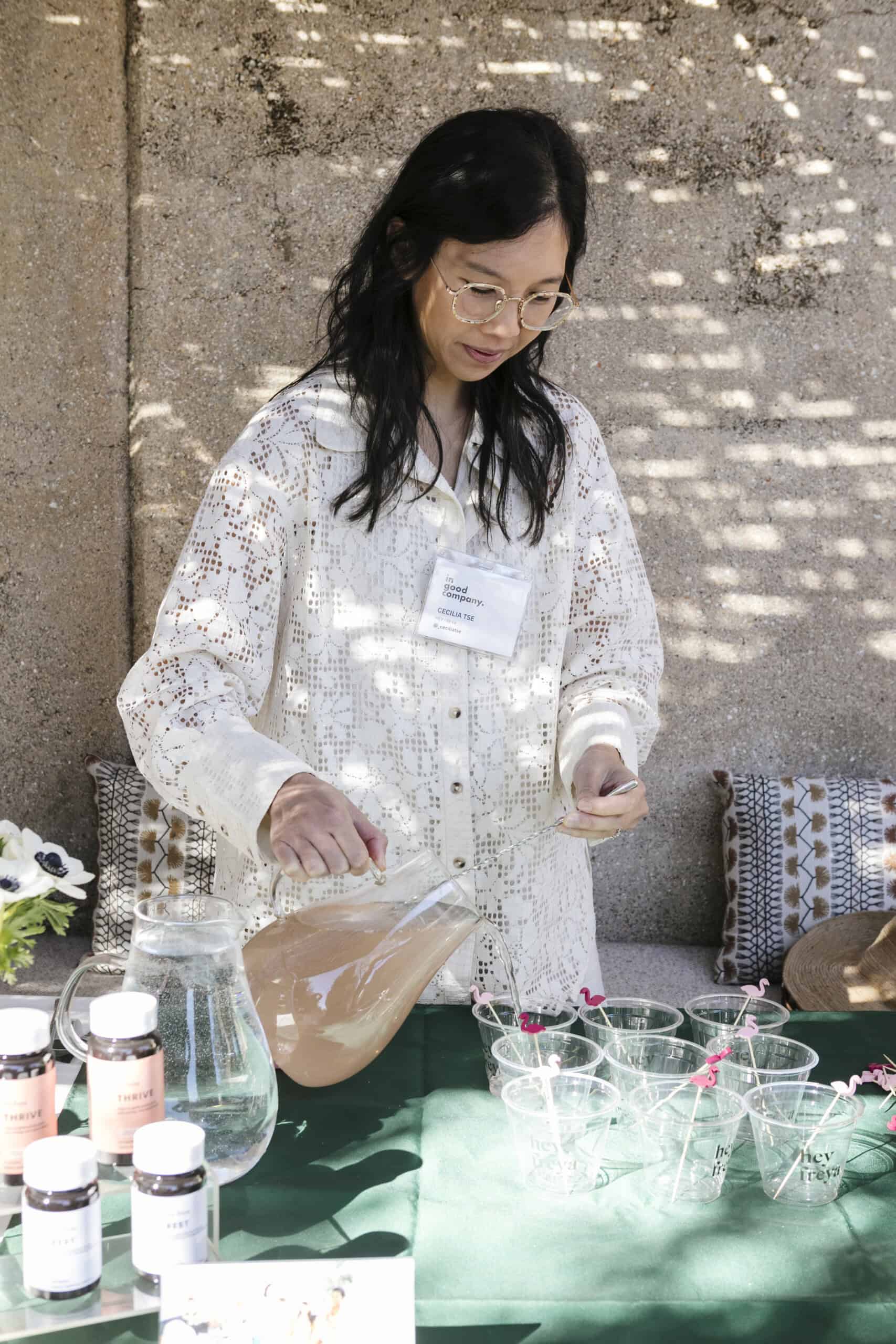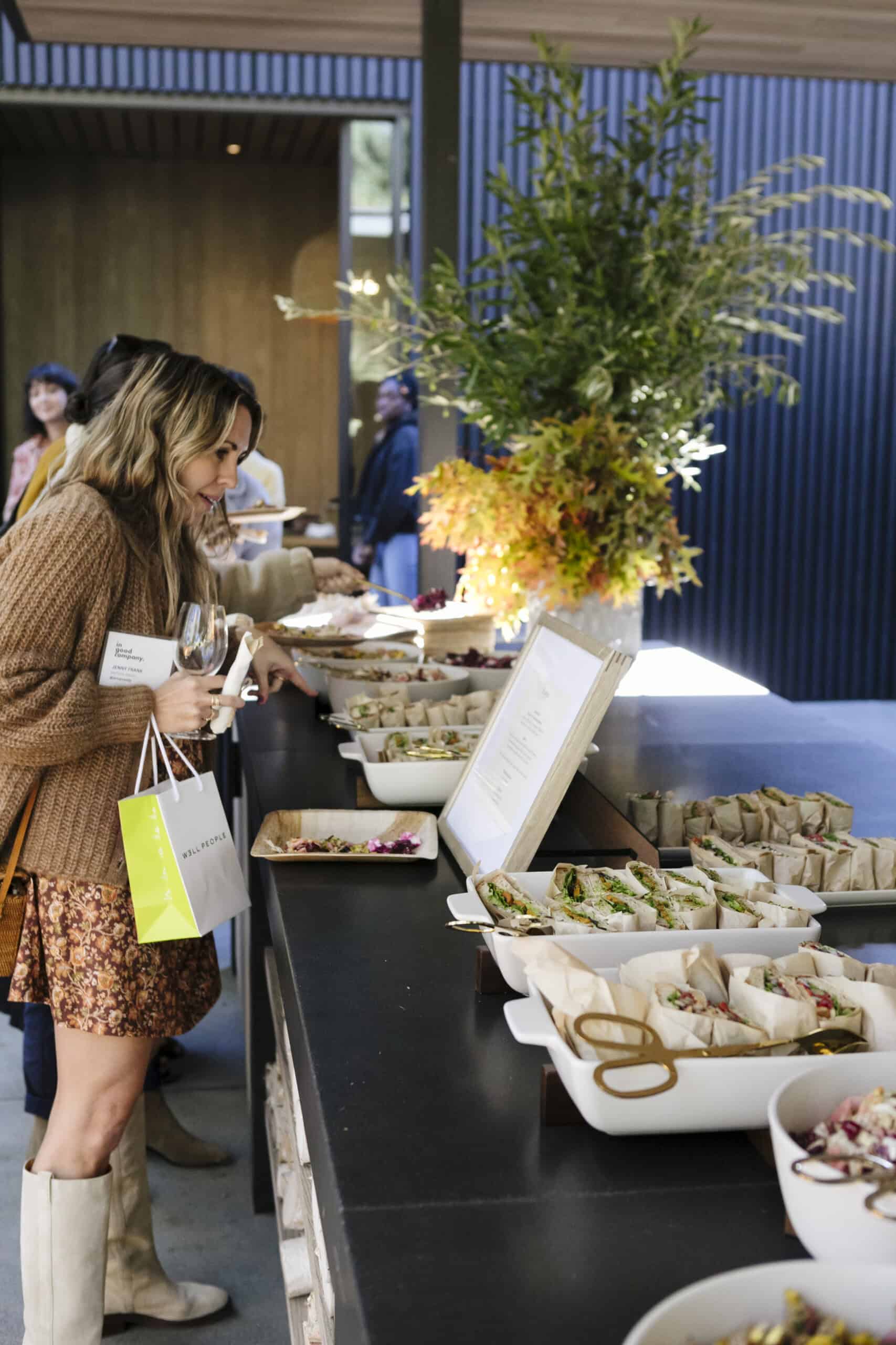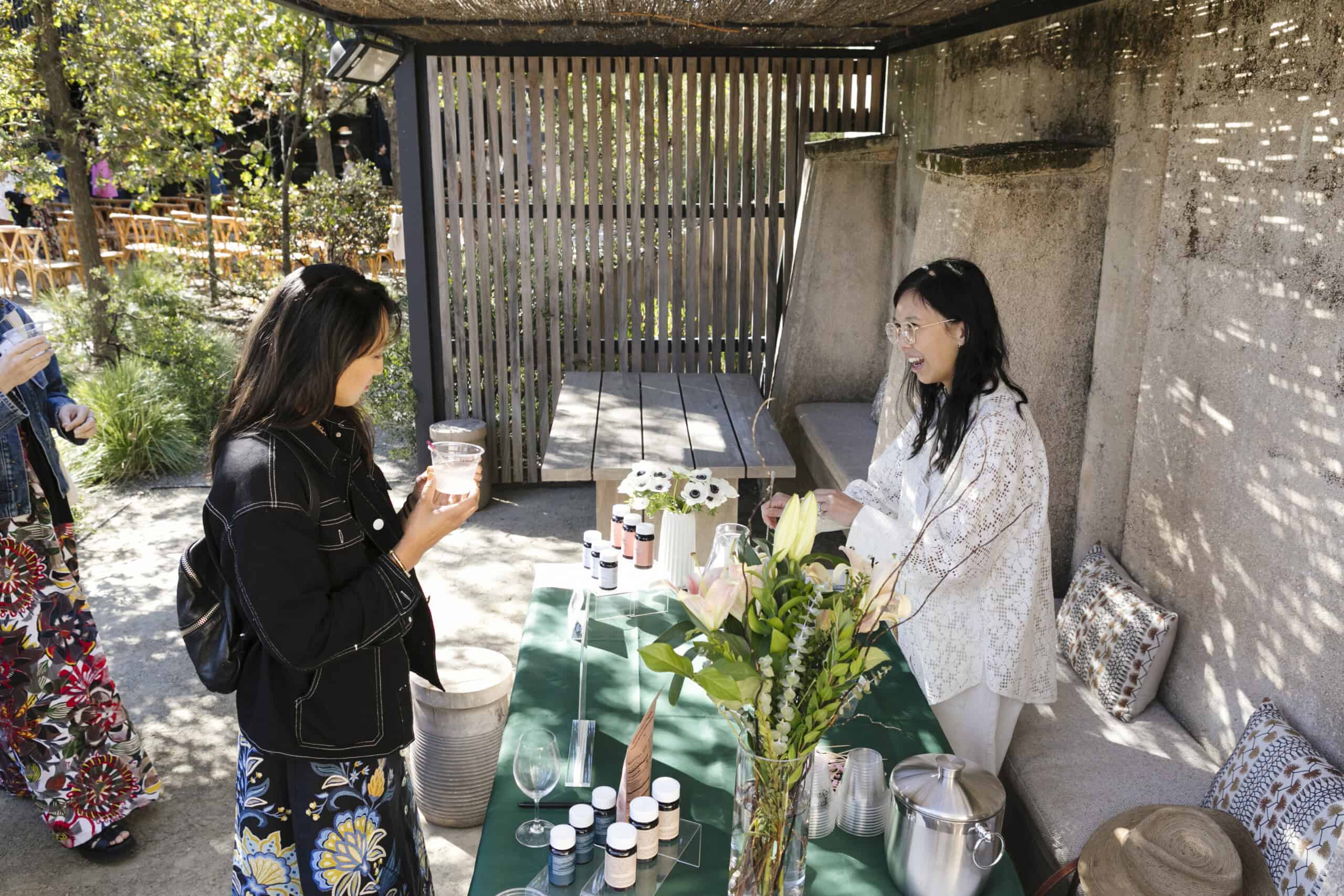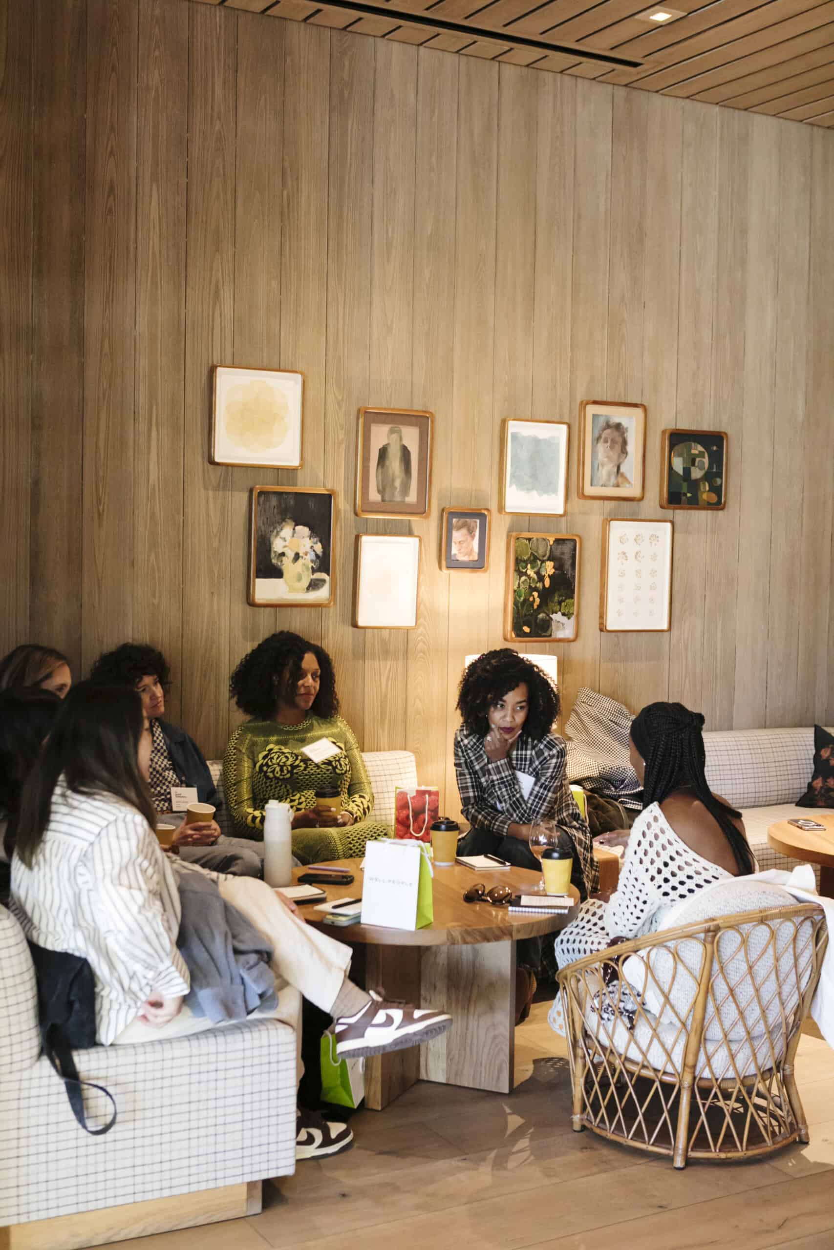 In addition to our live conversation and curated small-group sessions, all day long we enjoyed shade-matching and beauty giveaways by Well People, wellness check-ins by Hey Freya, and wine by Flowers. We were fueled by delicious breakfast and lunch spreads by Chef Wilson McFarlin of Flowers, vegan cheese by SriMu, and drinks by Poppi.
