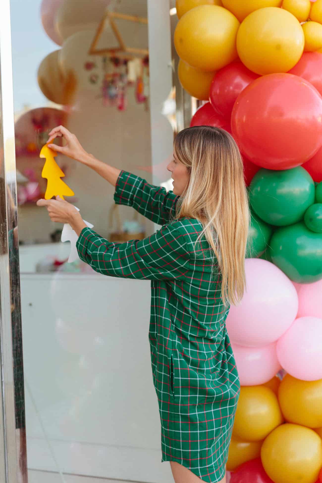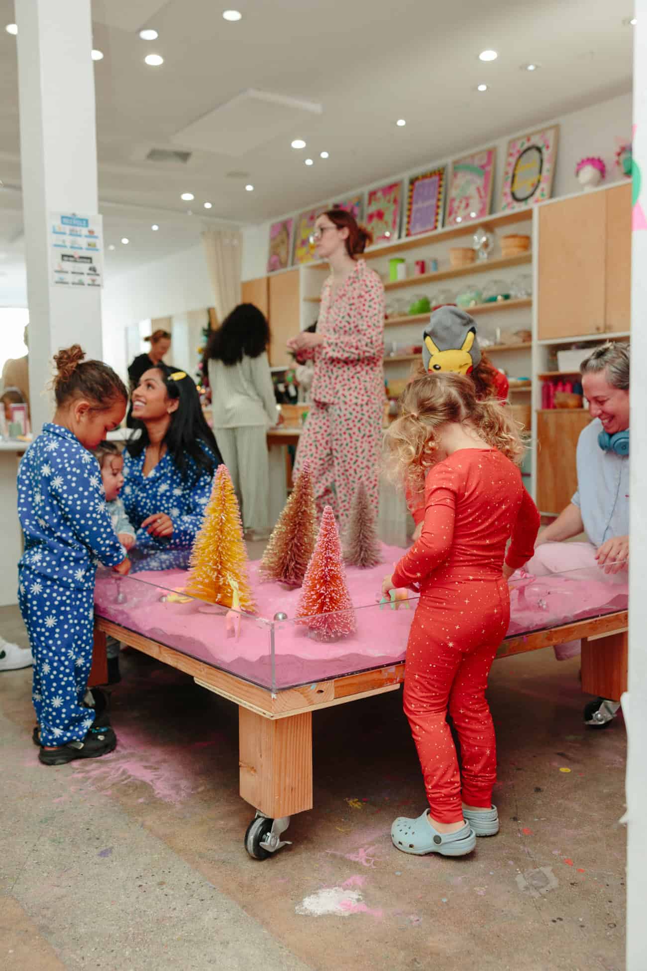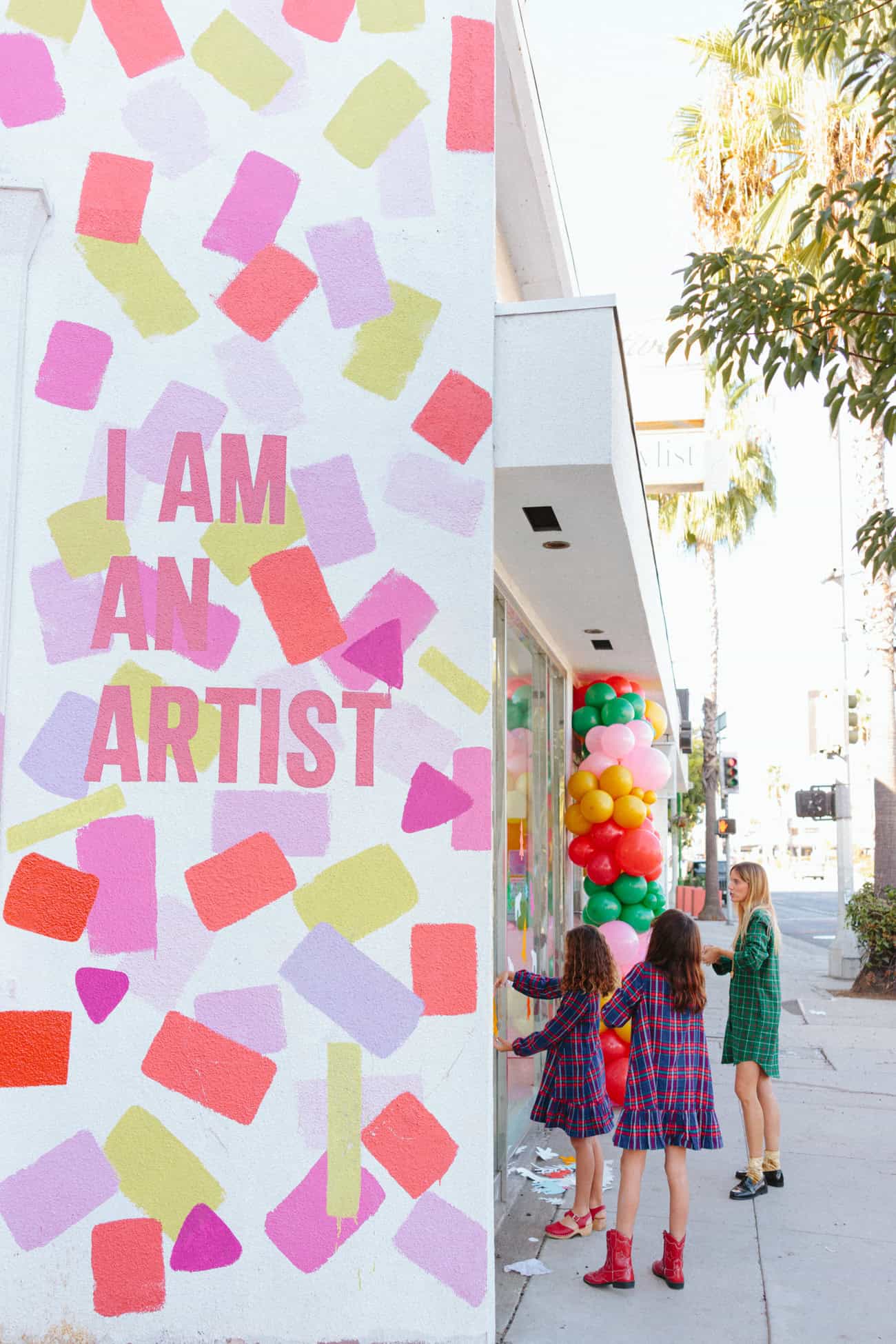 - Artist Chloe Fleury—who created all of our event art—puts the final touches on the Meri Cherry storefront with her daughters.