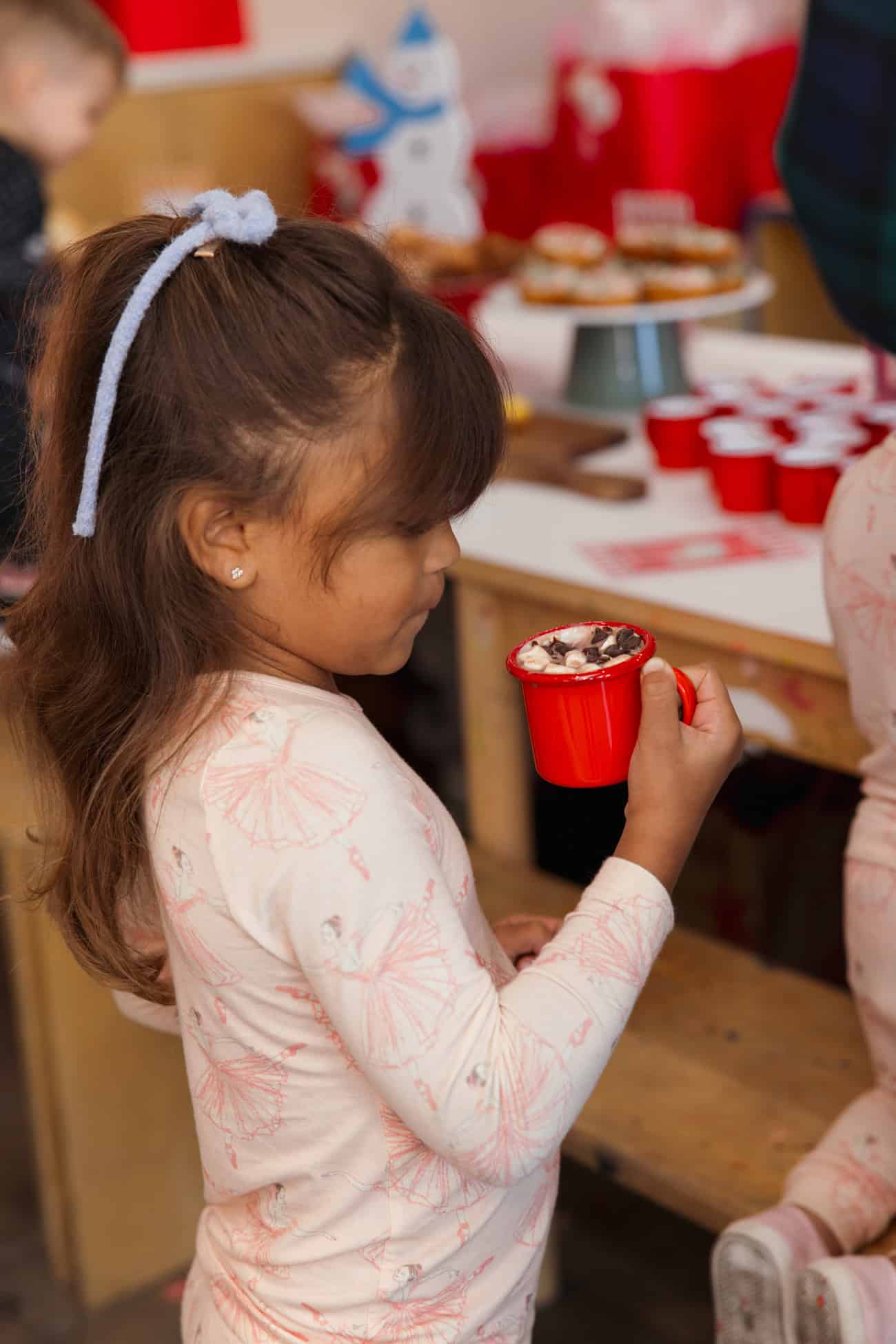 - Enjoying our hot cocoa bar by Falcon Enamelware, who kindly provided kids with the most adorable mini mugs.