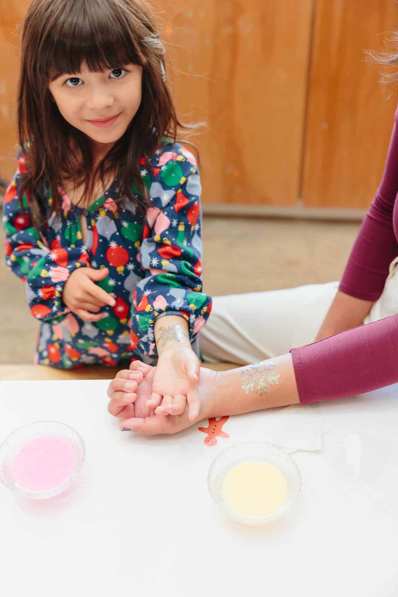 - Melissa Sonico and her daughter opted for sparkly snowflakes.