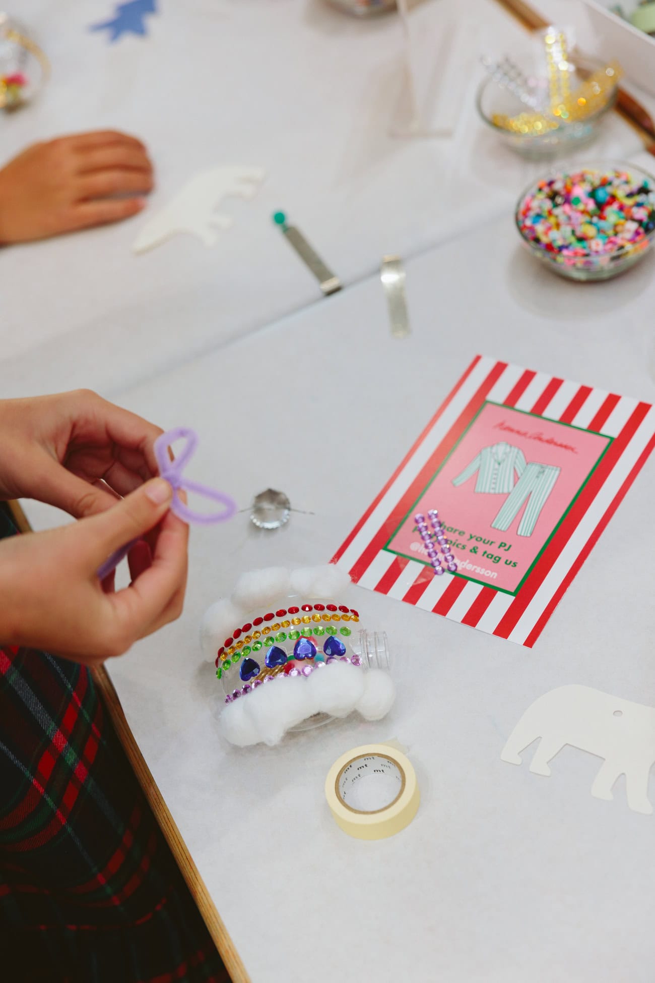 - Kids filled their glass ornaments with fuzzy balls and beads and bedazzled the exterior.