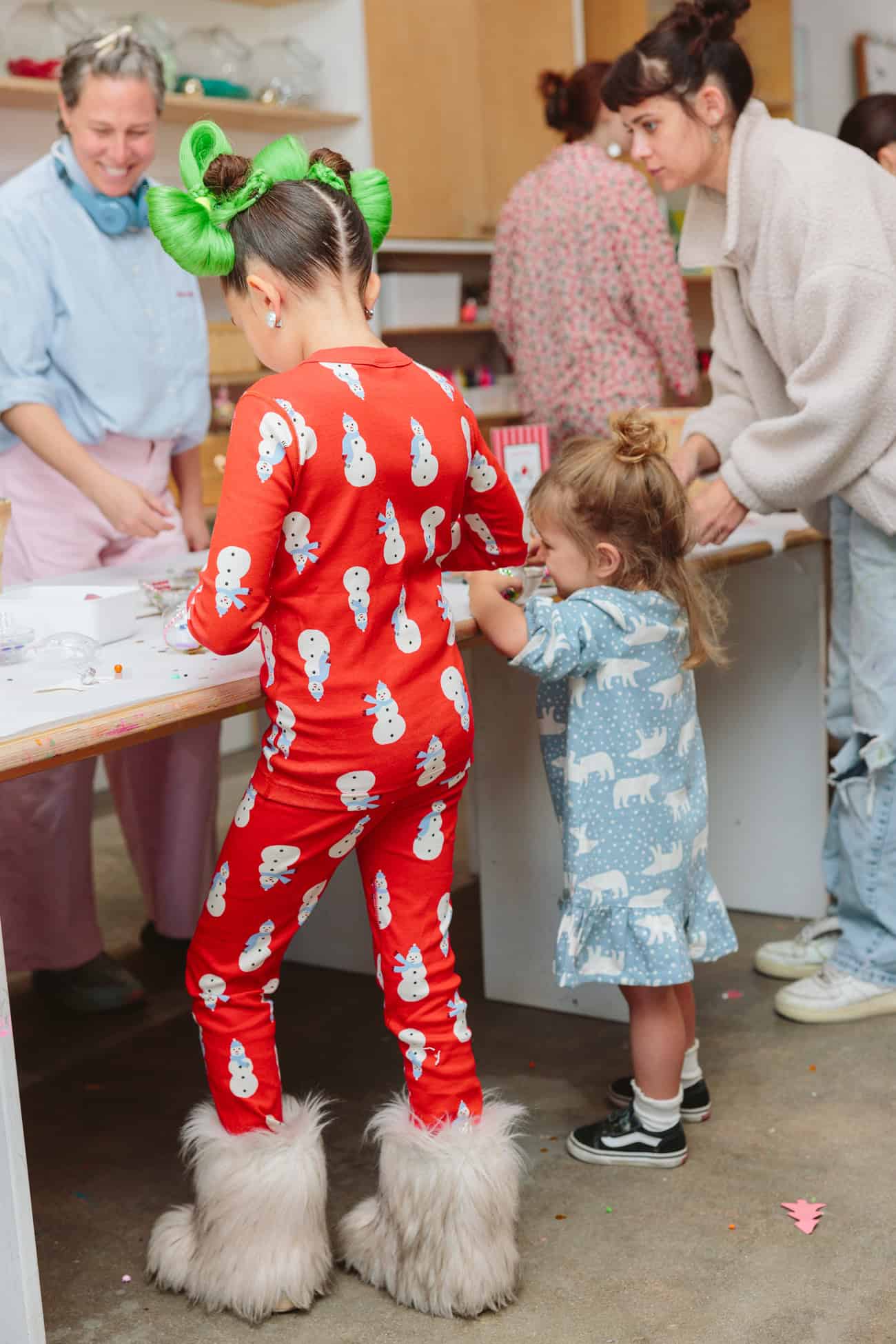 Hosted at the Meri Cherry art studio in Los Angeles, the event included holiday-themed interviews with 11-year-old celeb reporter Taylen Biggs, cookie decorating with Bakery Bling, fresh amazake waffles by Culture Crush, hot cocoa served out of the most darling Falcon Enamelware mini-mugs, ornament-making, temporary tattoos, and so much more!