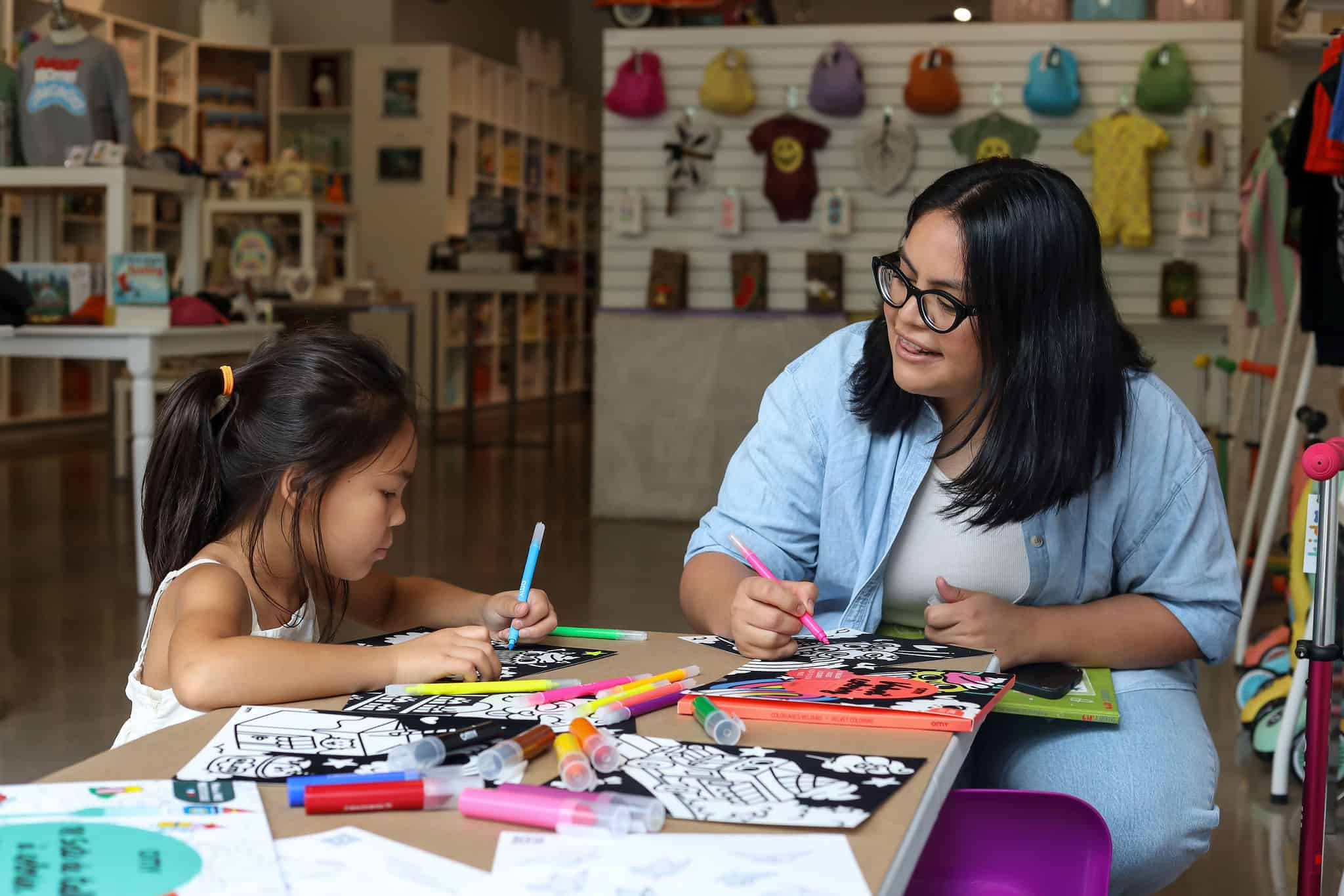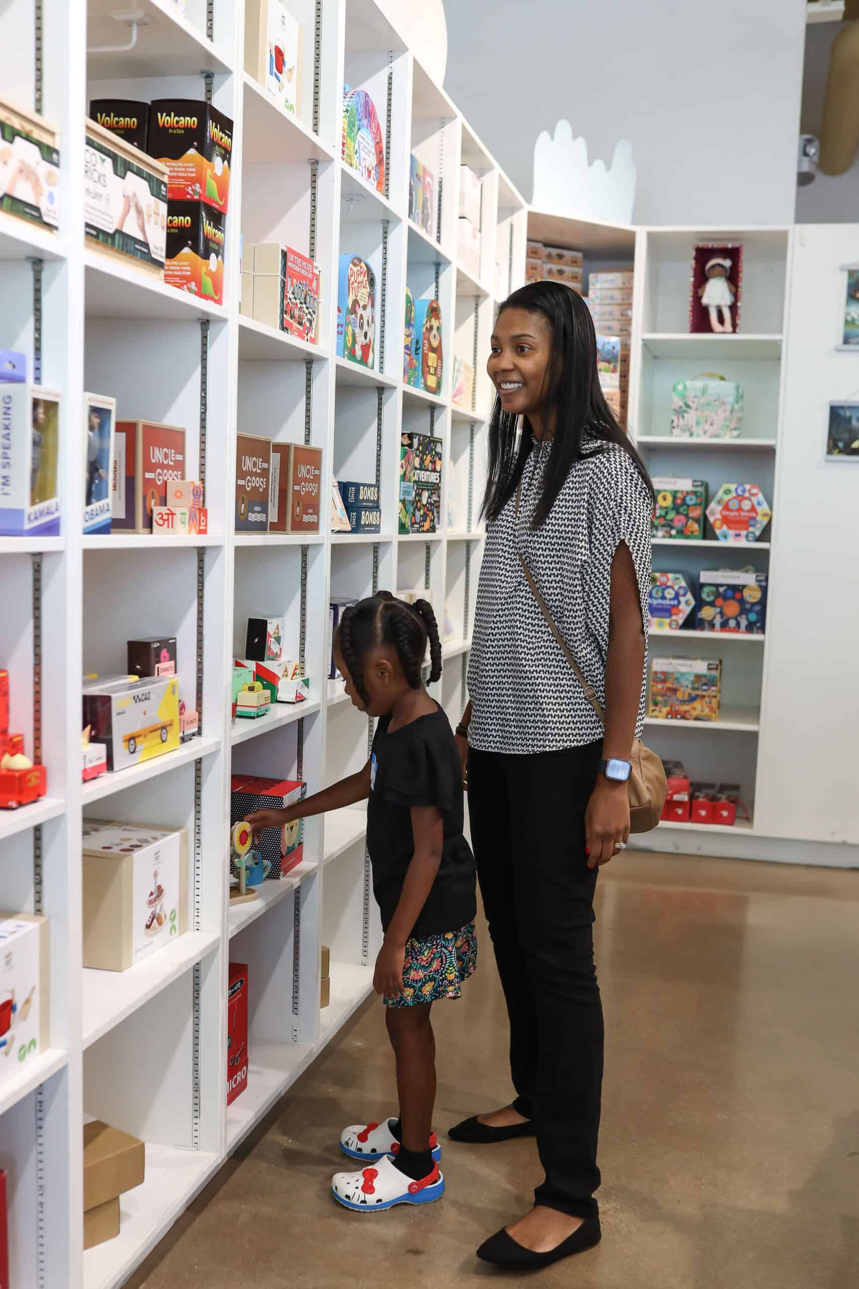 - Janelle and Jordyn checking out Kido's toy + book offerings.