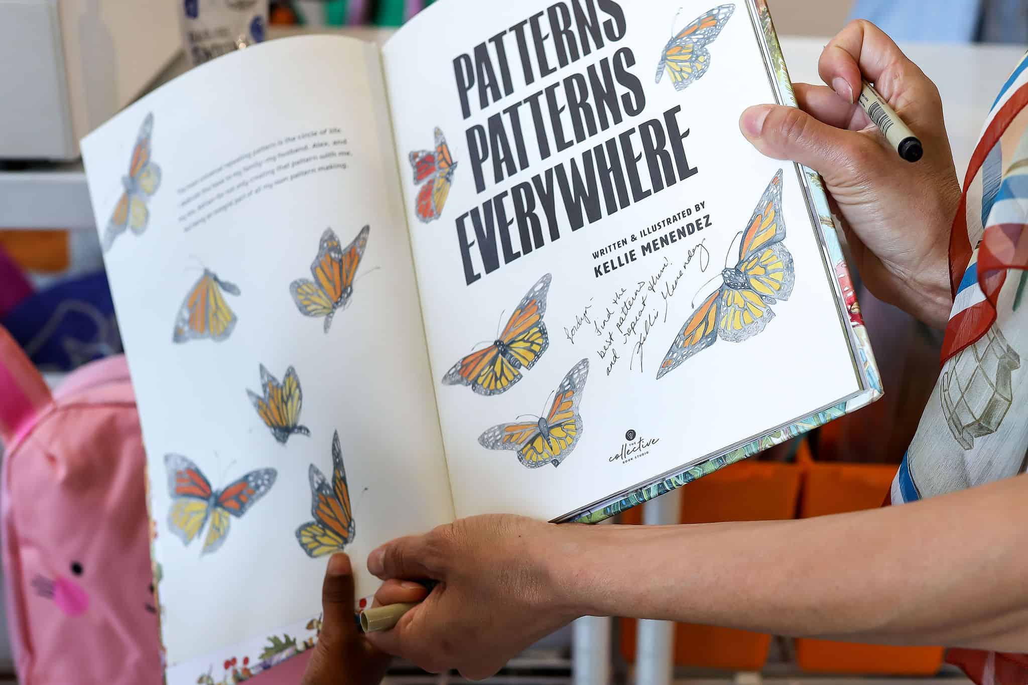 - Kellie signing Patterns, Patterns Everywhere for a new fan.