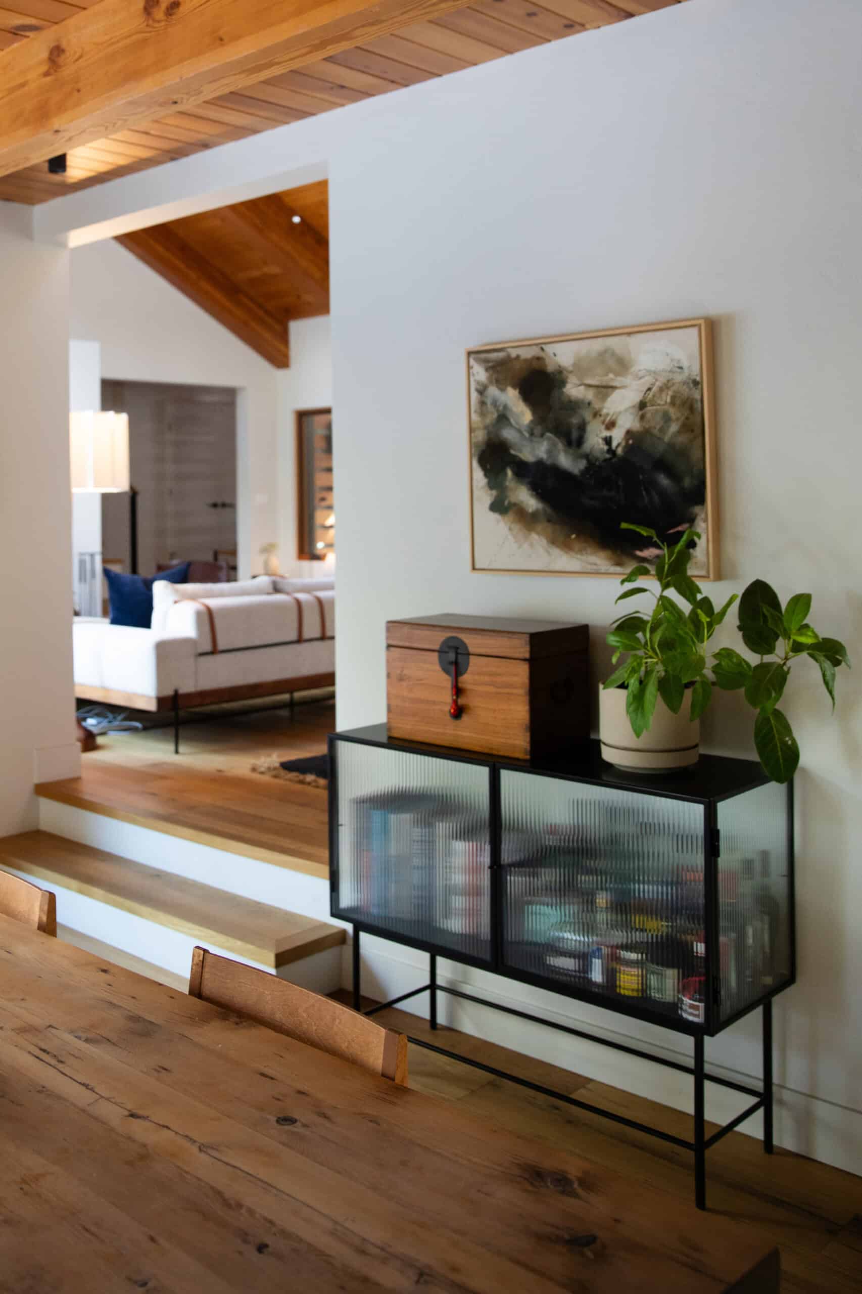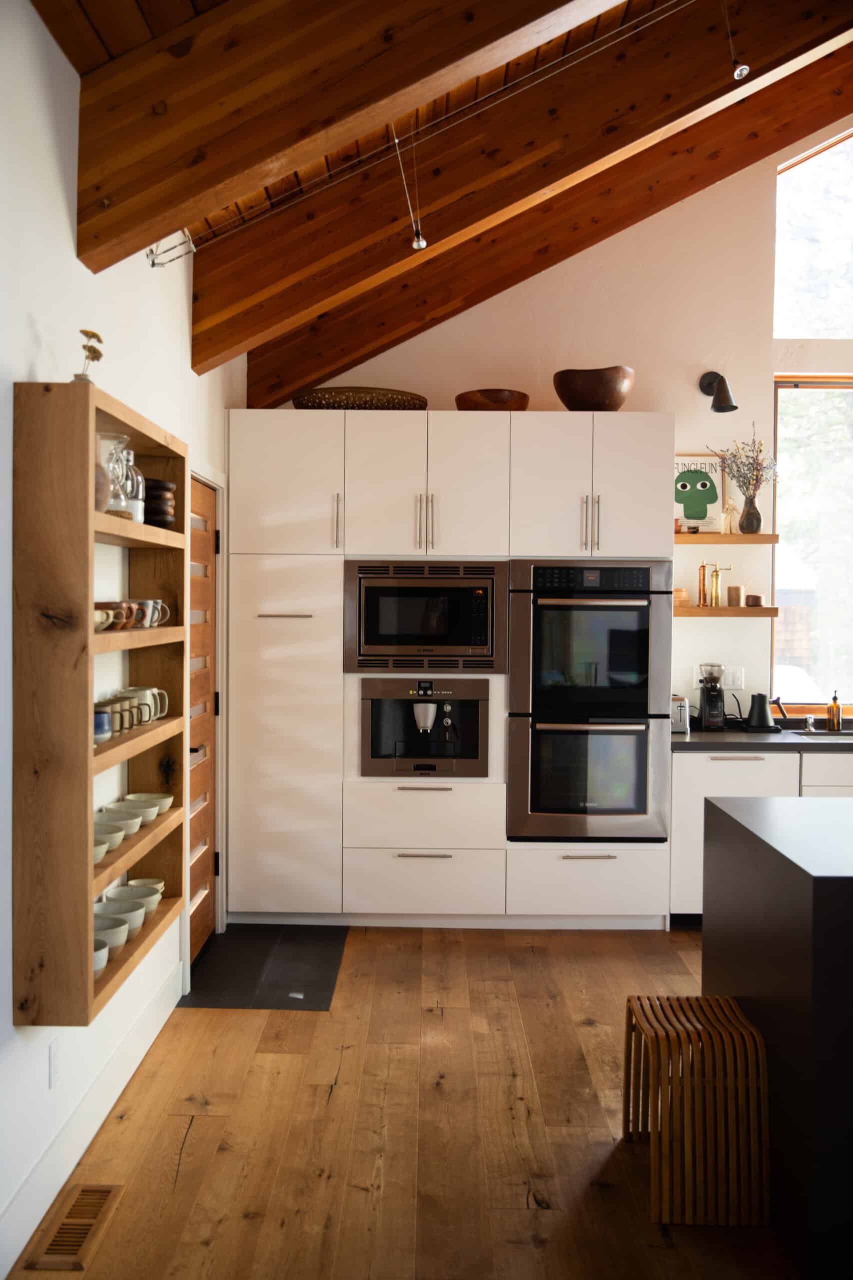 "Visual clutter has a direct impact on the clutter in my brain, so I function best when our house is tidy (which is a near constant battle with a 4 1/2 year old). And while our aesthetic could be described as minimal, it’s important for our house to feel warm and to fit its surroundings. We’re slowly redecorating where and when we see fit; at the moment we have a lot of hearty wood elements, rich earth tones, varying textiles for texture and depth, and collectibles from our travels."