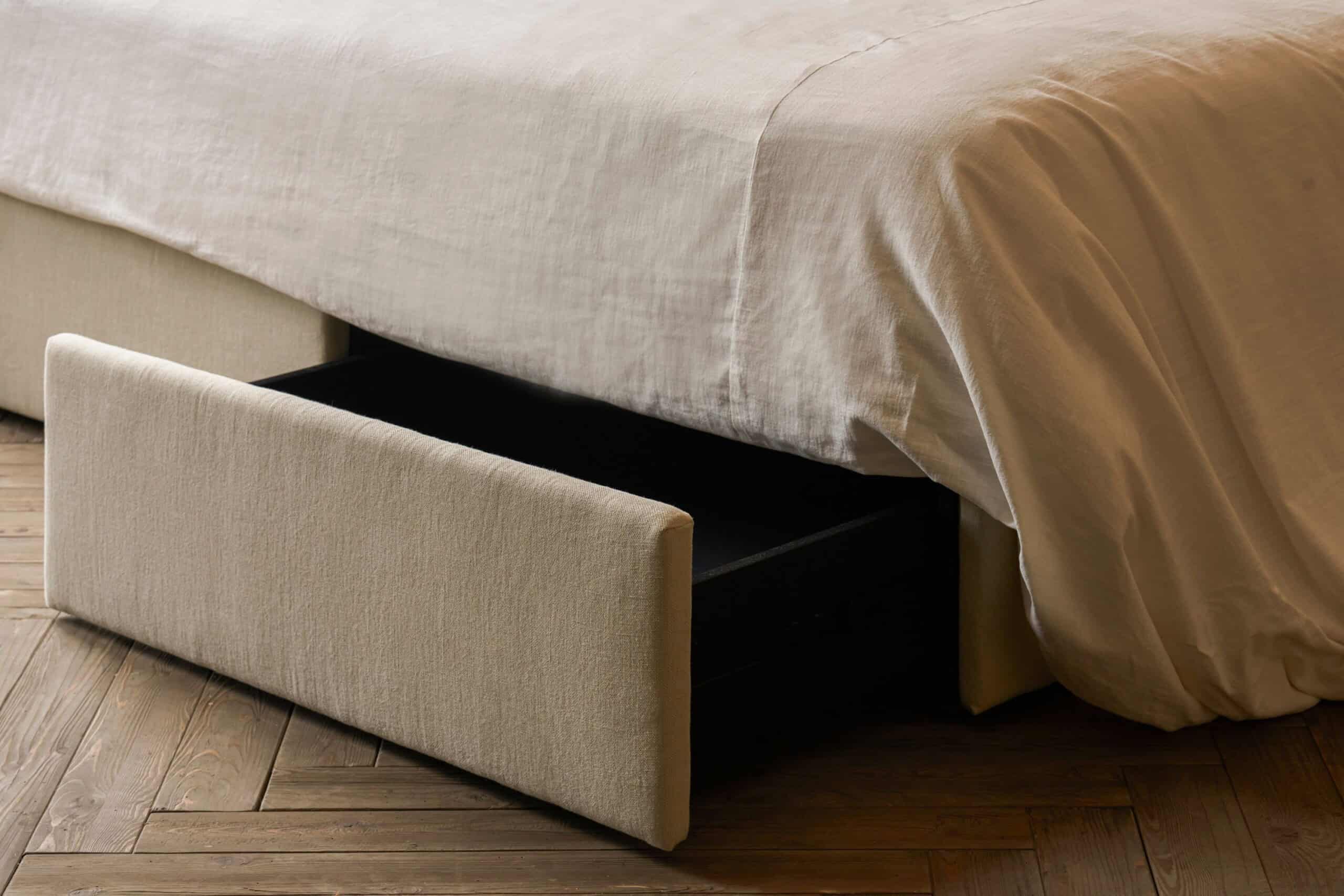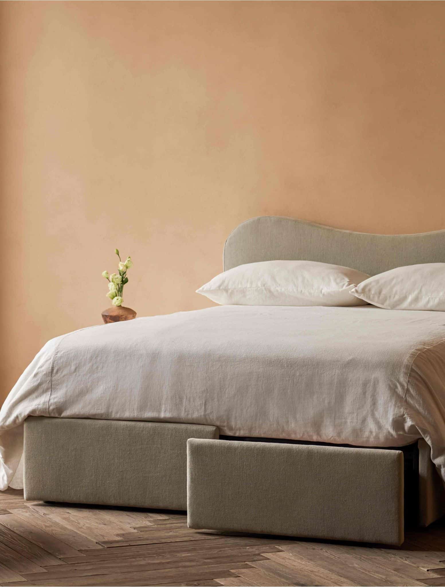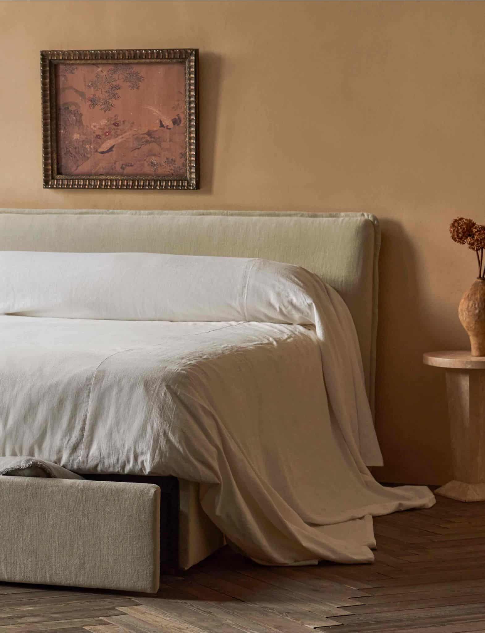 The newest Devyn, Esmé, and Neva storage beds launched earlier this month and are available in queen and king sizes in seven delicious fabric choices: Washed Cotton Velvet, Thread-Dyed Cotton Linen, Recycled Faux Fur, Recycled Poly Linen, Recycled Poly Weave, Medium Weight Linen, and Light Weight Linen. They also come in up to 30 different color options—from classic neutrals to bright sunflower yellow, deep emerald green, and everything in between.