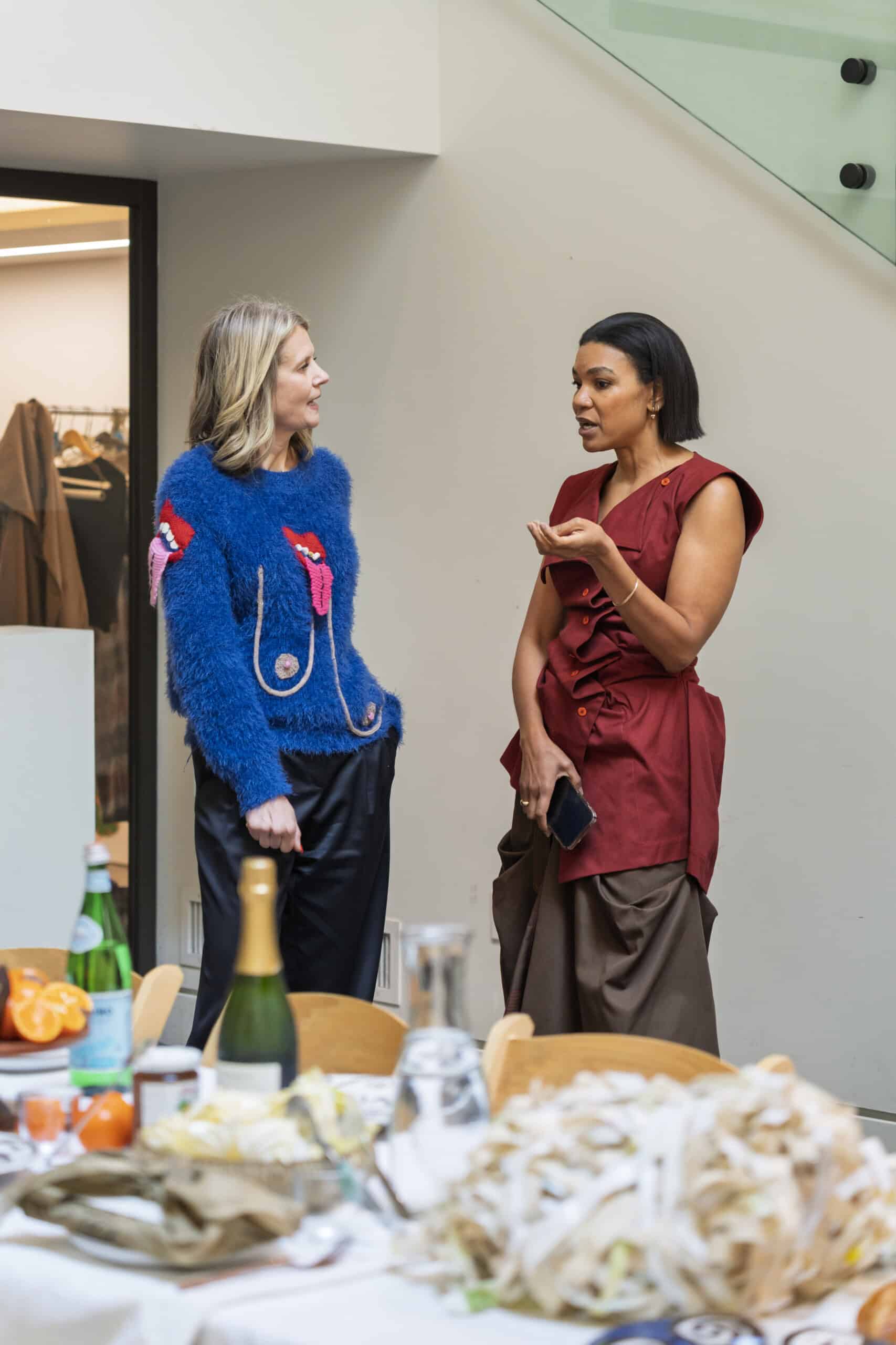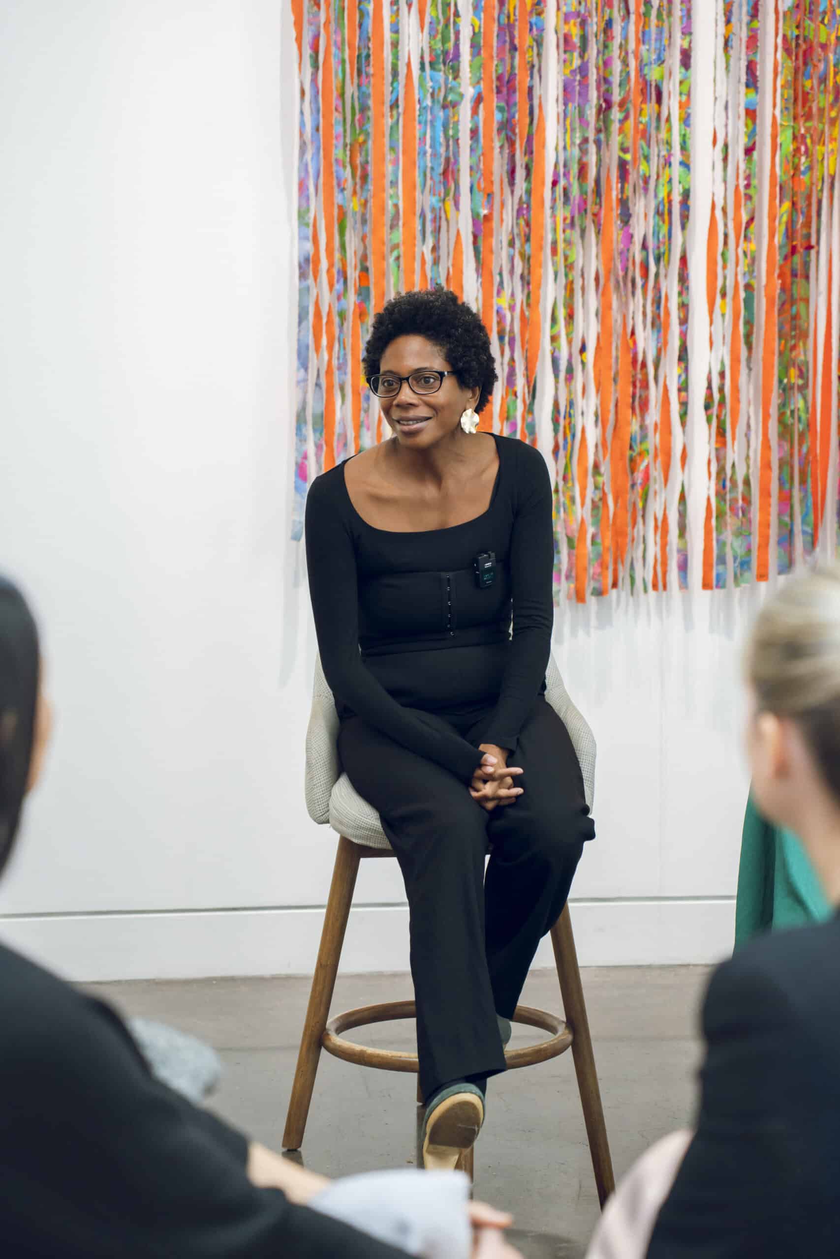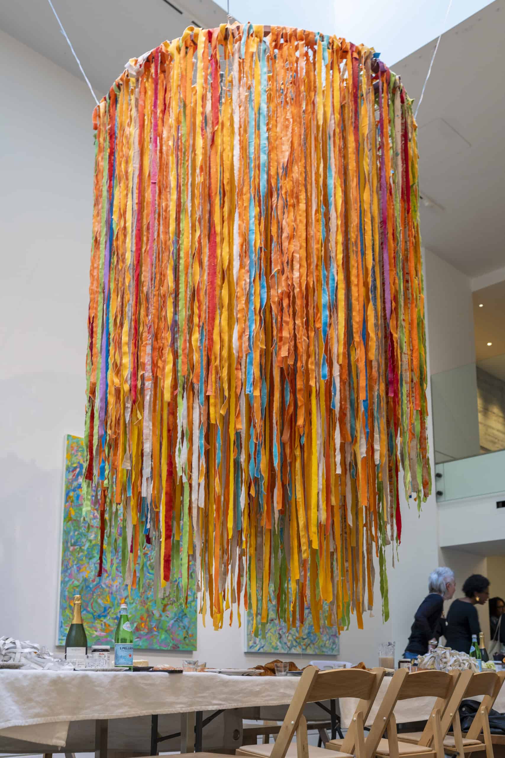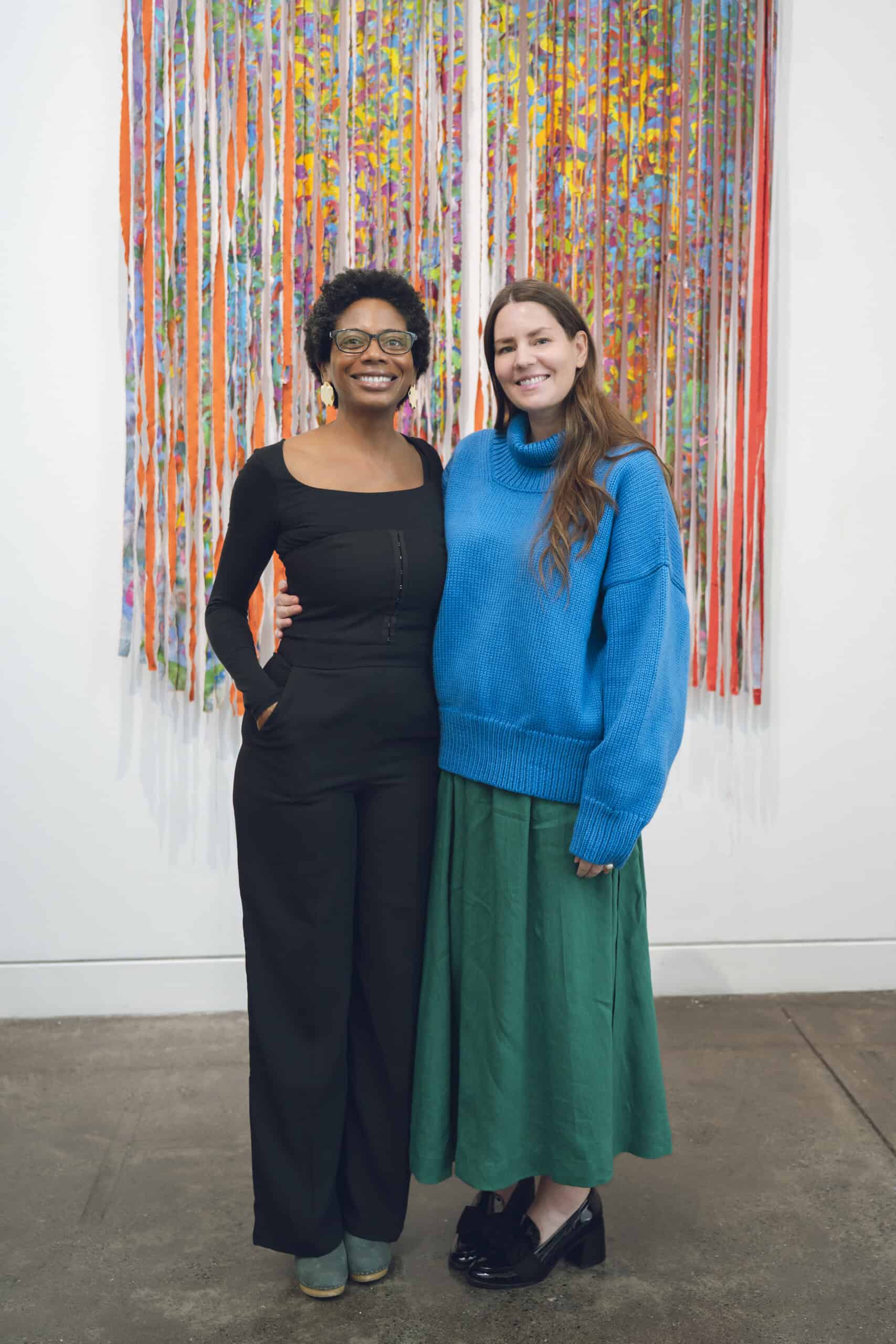 Over lunch, we sat down with Mays for a live conversation that moved fluidly between life and work: raising two now-adult daughters, inspiration found in her new studio in Colombia, and the emotional depth embedded in her practice. She spoke about the personal roots of TORN UP, from honoring her grandfather’s labor as a house painter in the American South to the powerful act of naming—titling her works after names found on slave manifests as gestures of remembrance and reclamation.
