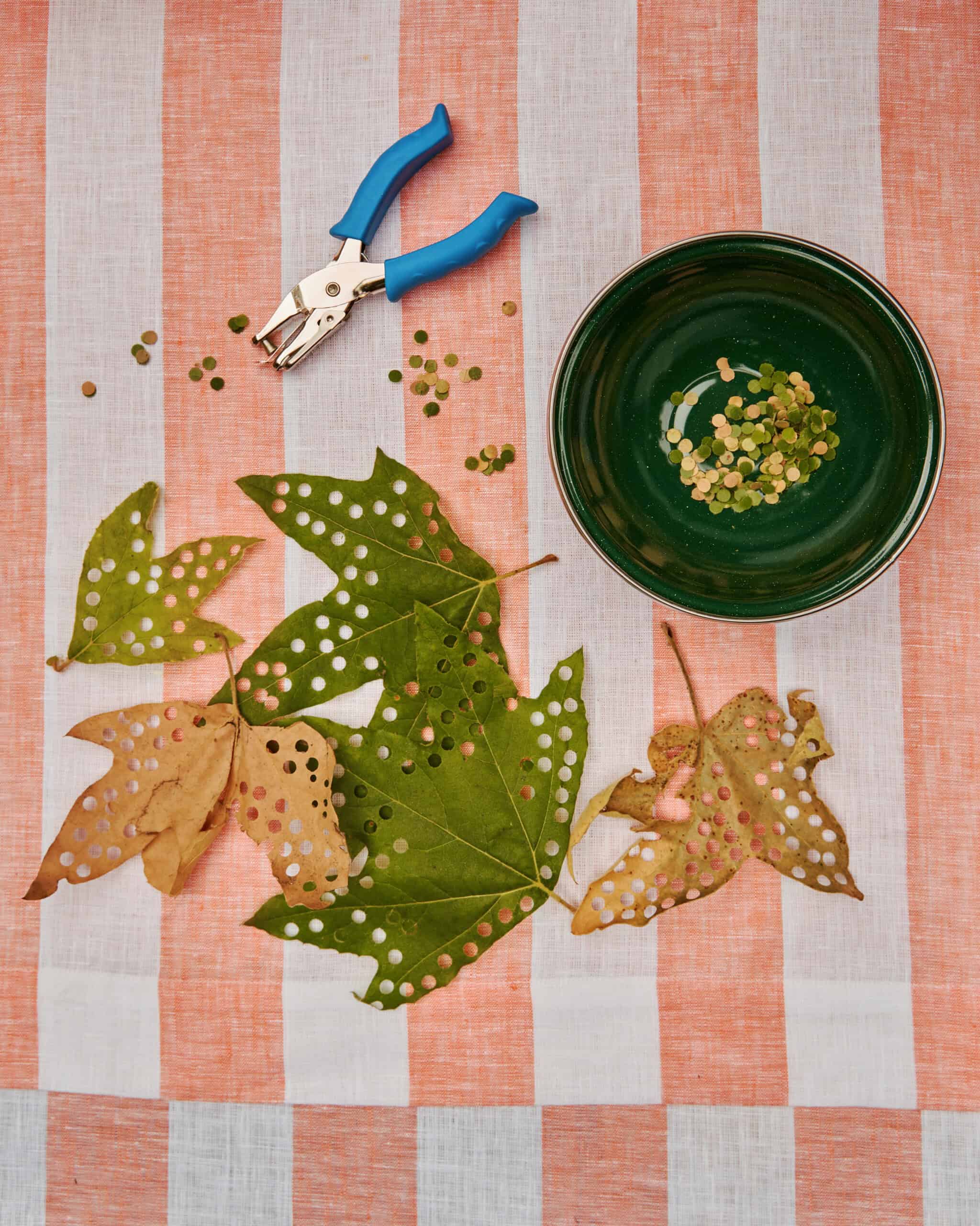 "The leaf confetti was just a fun decor moment—who needs pre-made, store-bought confetti when you have some leaves and a hole punch?!"