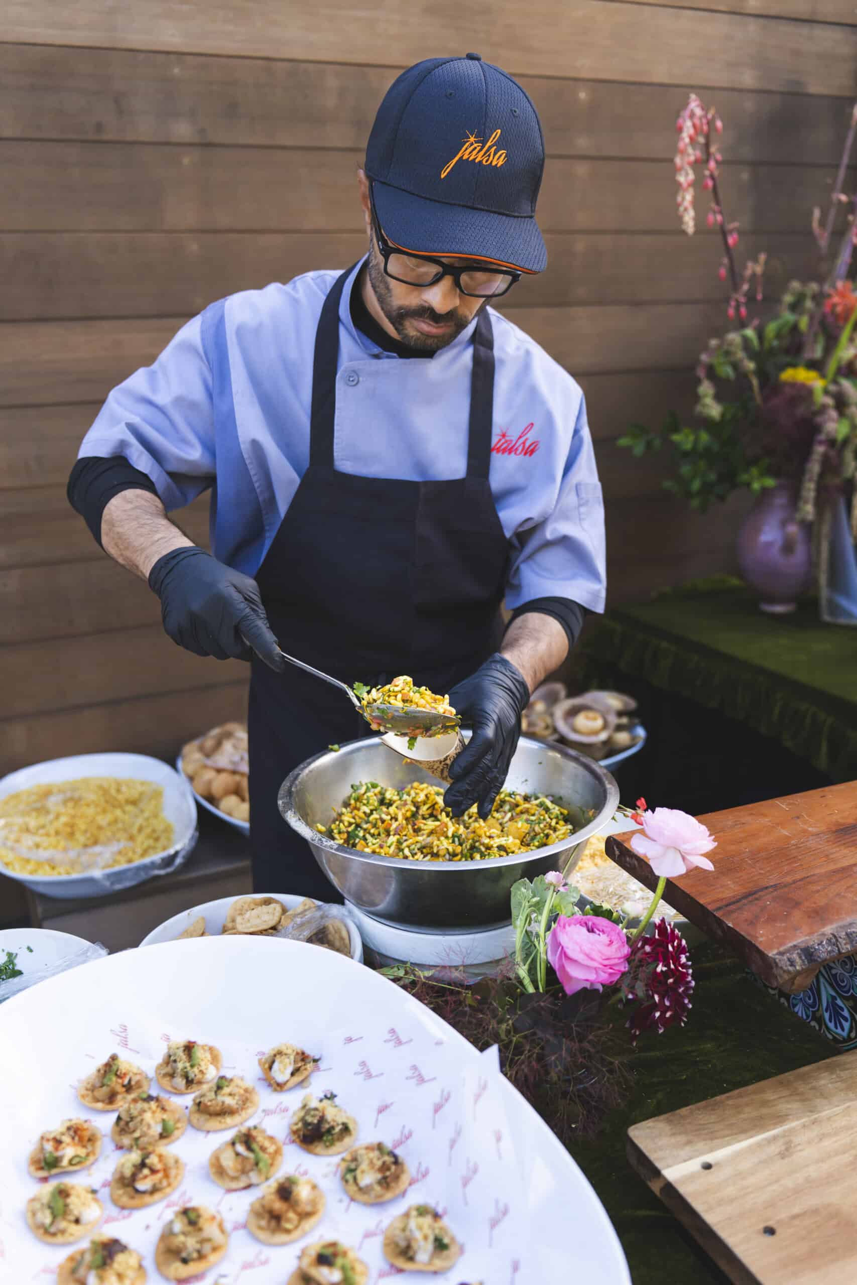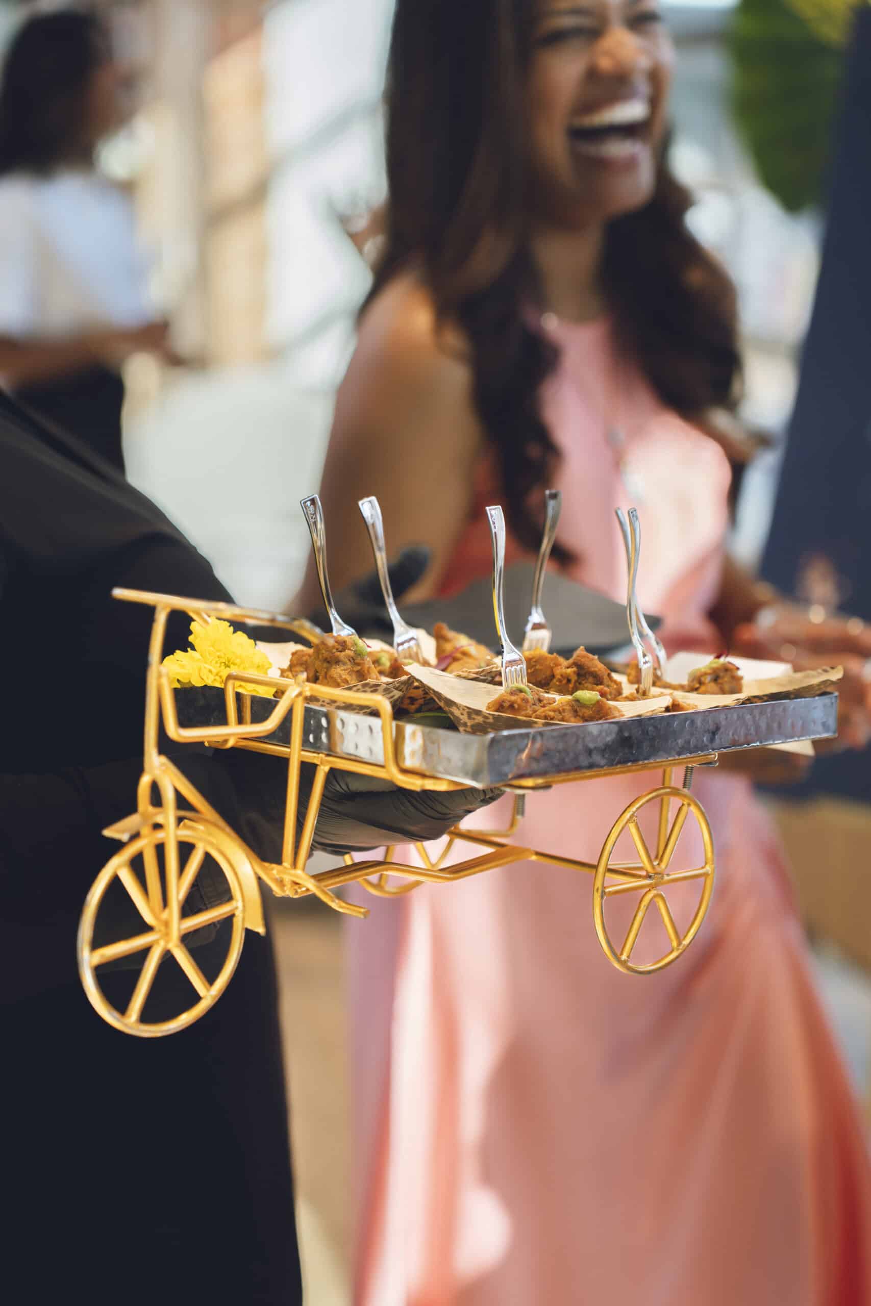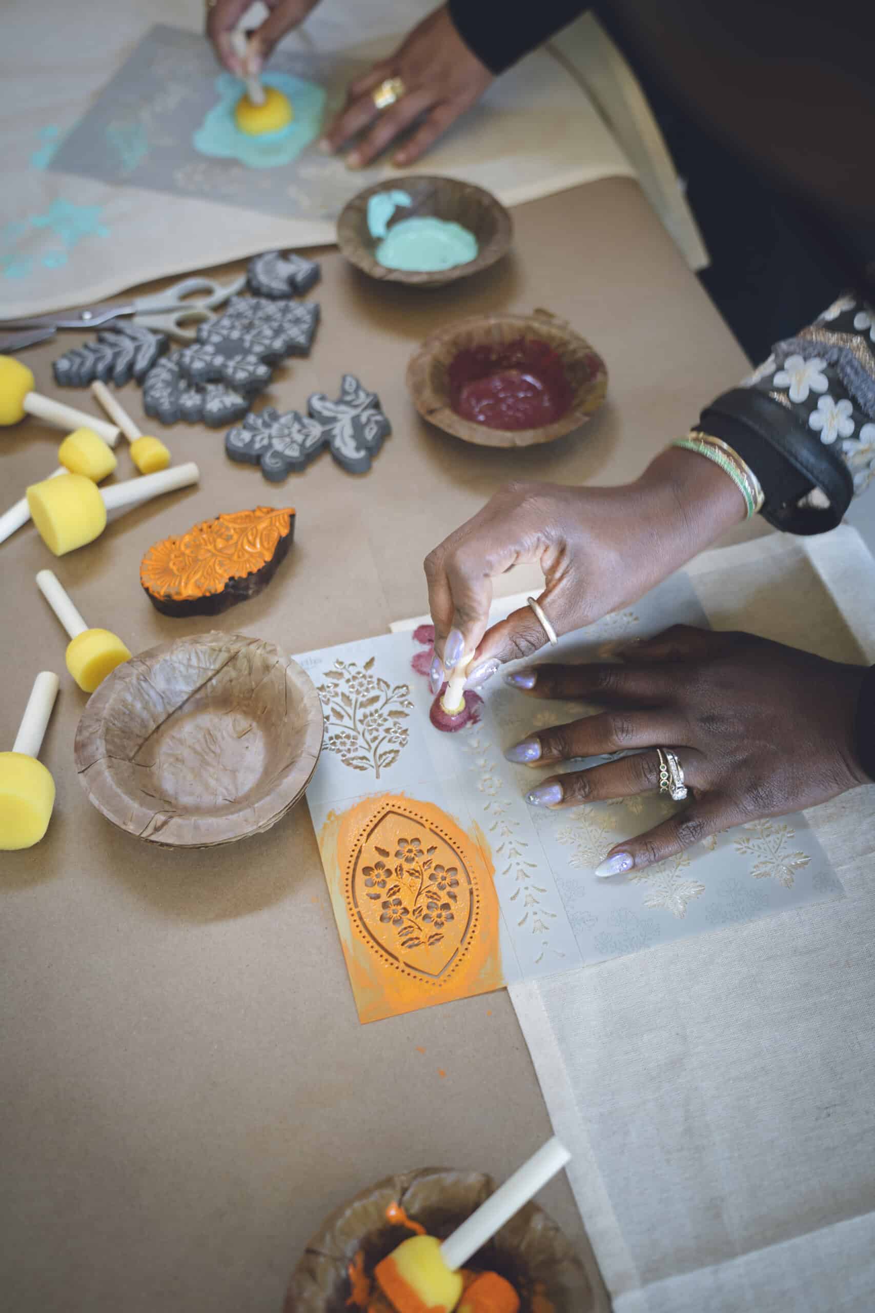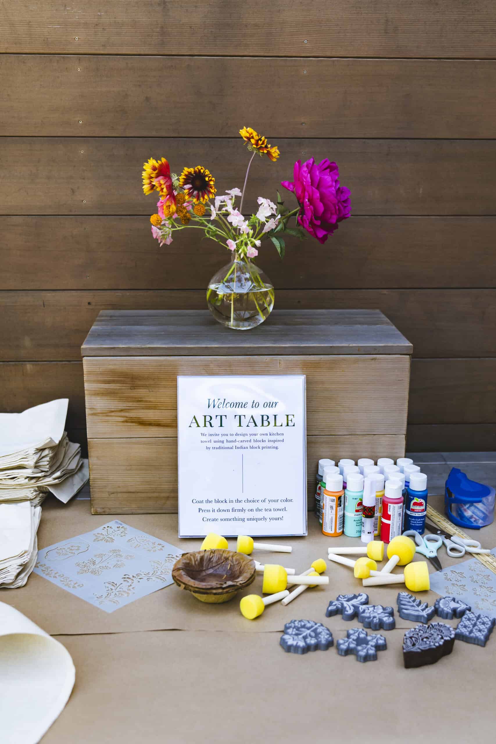Held at the stunning Four One Nine rooftop space in San Francisco, the party invited guests to indulge in a delicious chaat bar and other foods by Jalsa, sip on Mumbai-inspired cocktails by Hanson of Sonoma, create wearable florals with Natalie Brookshire, make traditional block print textiles, and so much more.