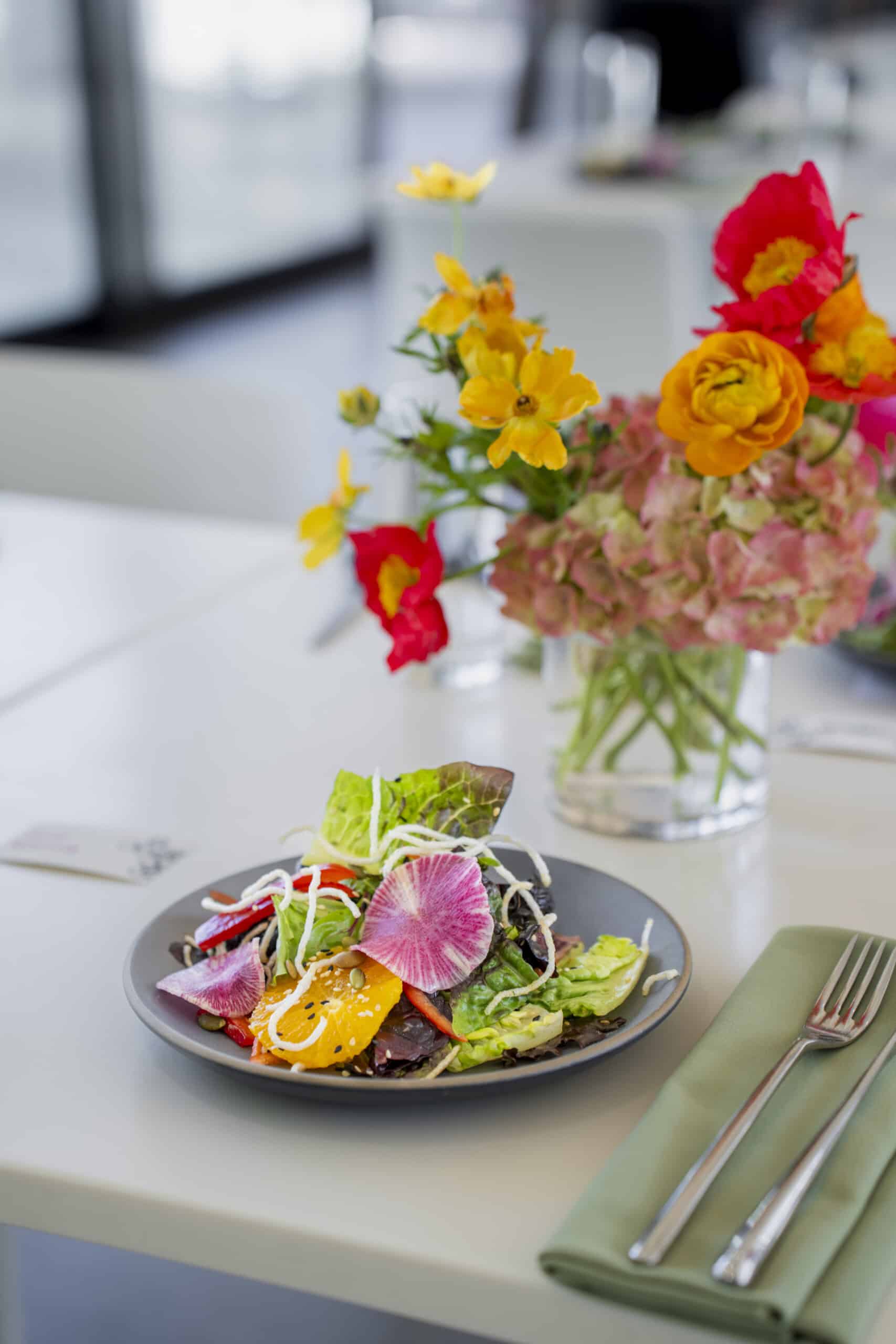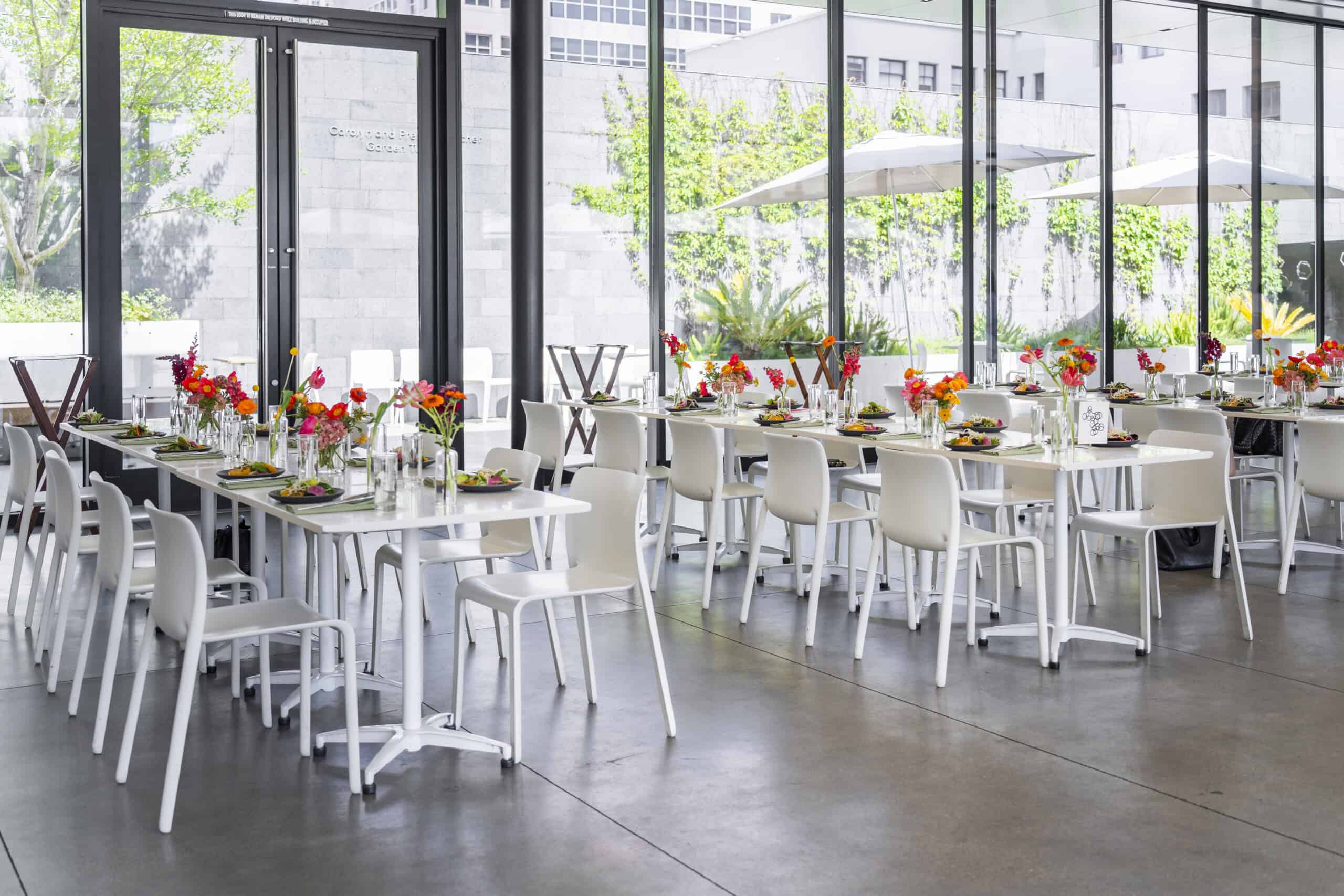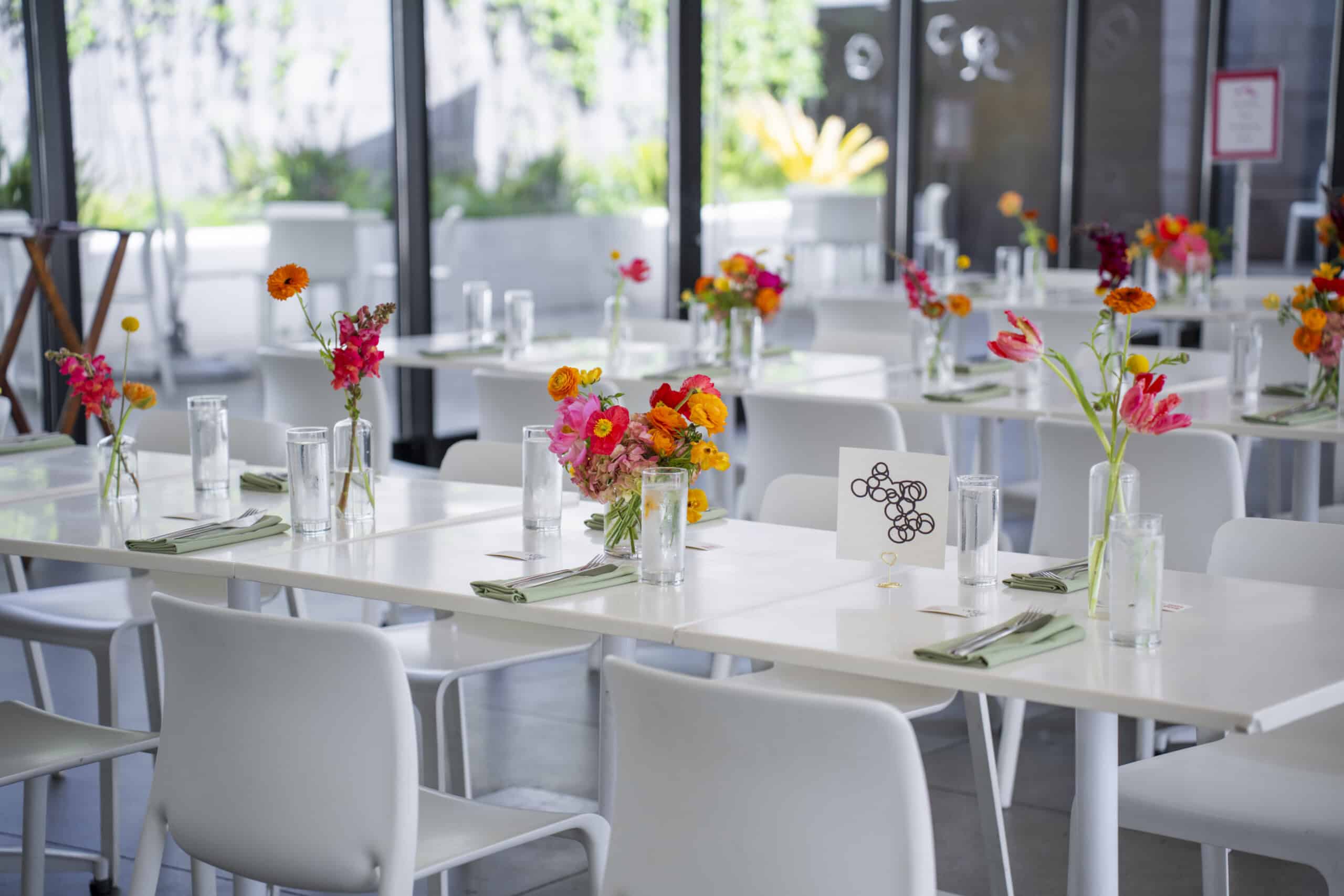 Every detail of our event was intentional, heartfelt, and inspired by the powerful legacy of Ruth Asawa—a prolific artist, mother of 6, and public arts advocate who changed the way art is taught in local schools. Our stunning floral arrangements featured blooms seen in Ruth’s botanical drawings, our 3-course menu was infused with Japanese flavors, and our guests found their tables through visual cues and reflection questions that were linked to the exhibition.