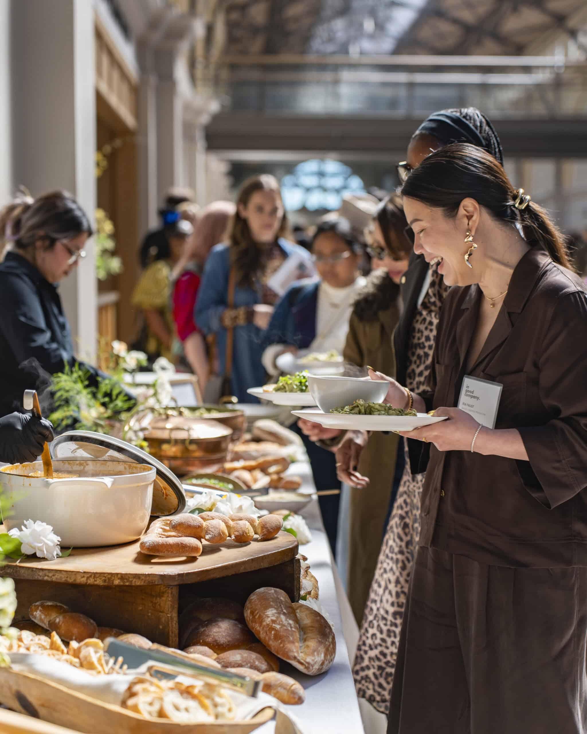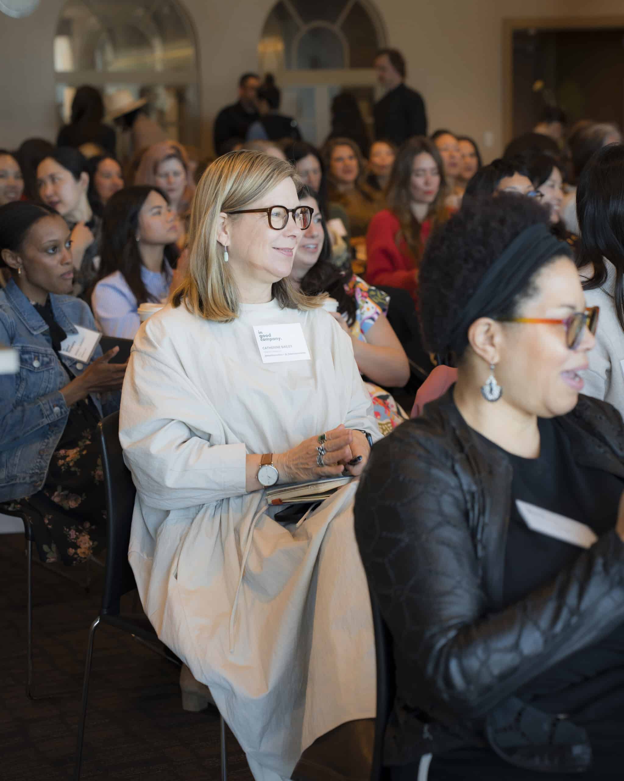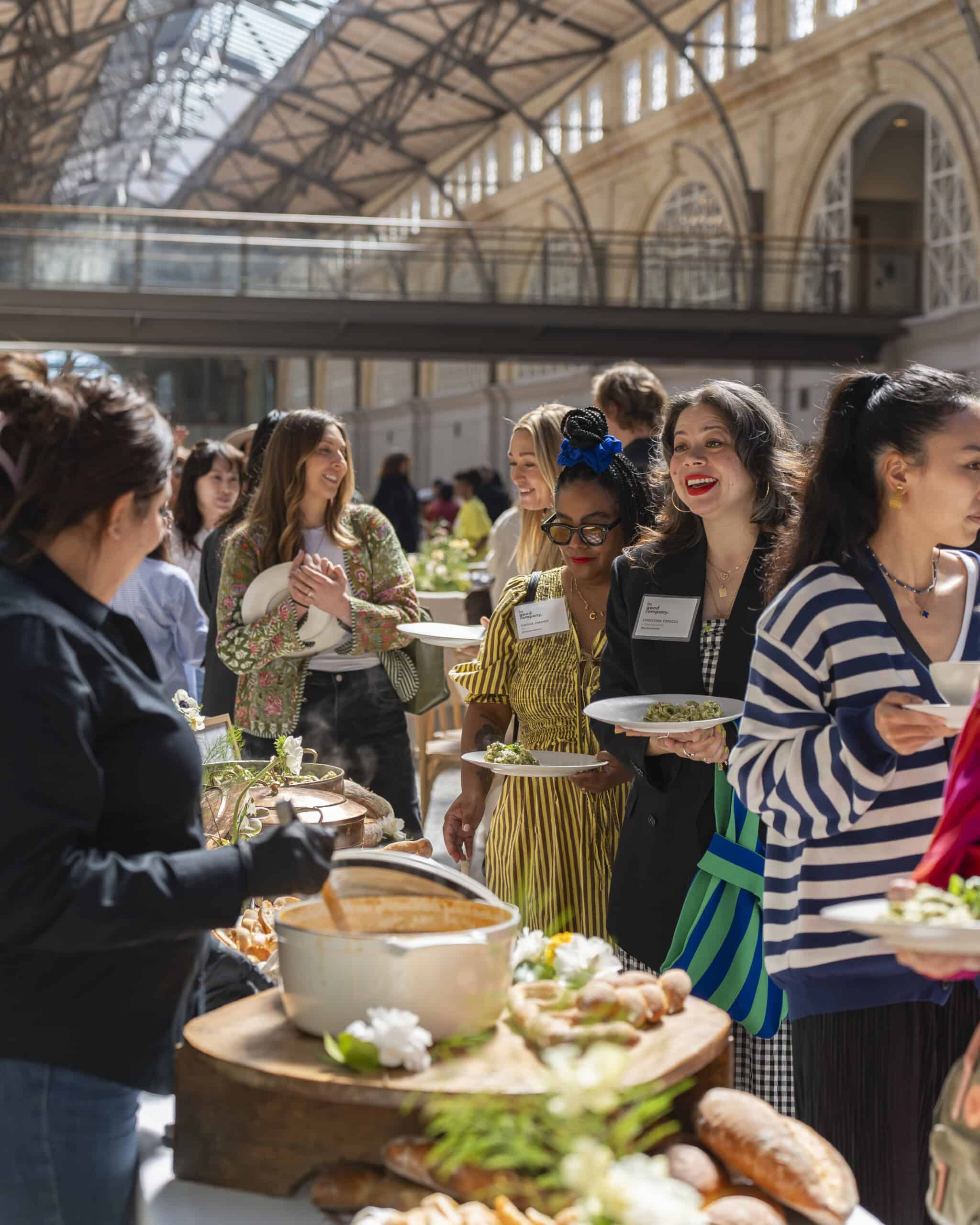 With Women’s History Month in full swing, it’s the perfect time to host some of our favorite MOTHER + In Good Company community members in our backyard of San Francisco. Over 100 incredible women gathered at the iconic Ferry Building for a delicious organic lunch by Amy’s Kitchen, a powerful panel featuring Rati Sahi, CEO and President of The RealReal, strategist and activist Jamira Burley, artist and entrepreneur Jessica Hische, and moderated by yours truly—and so much more.