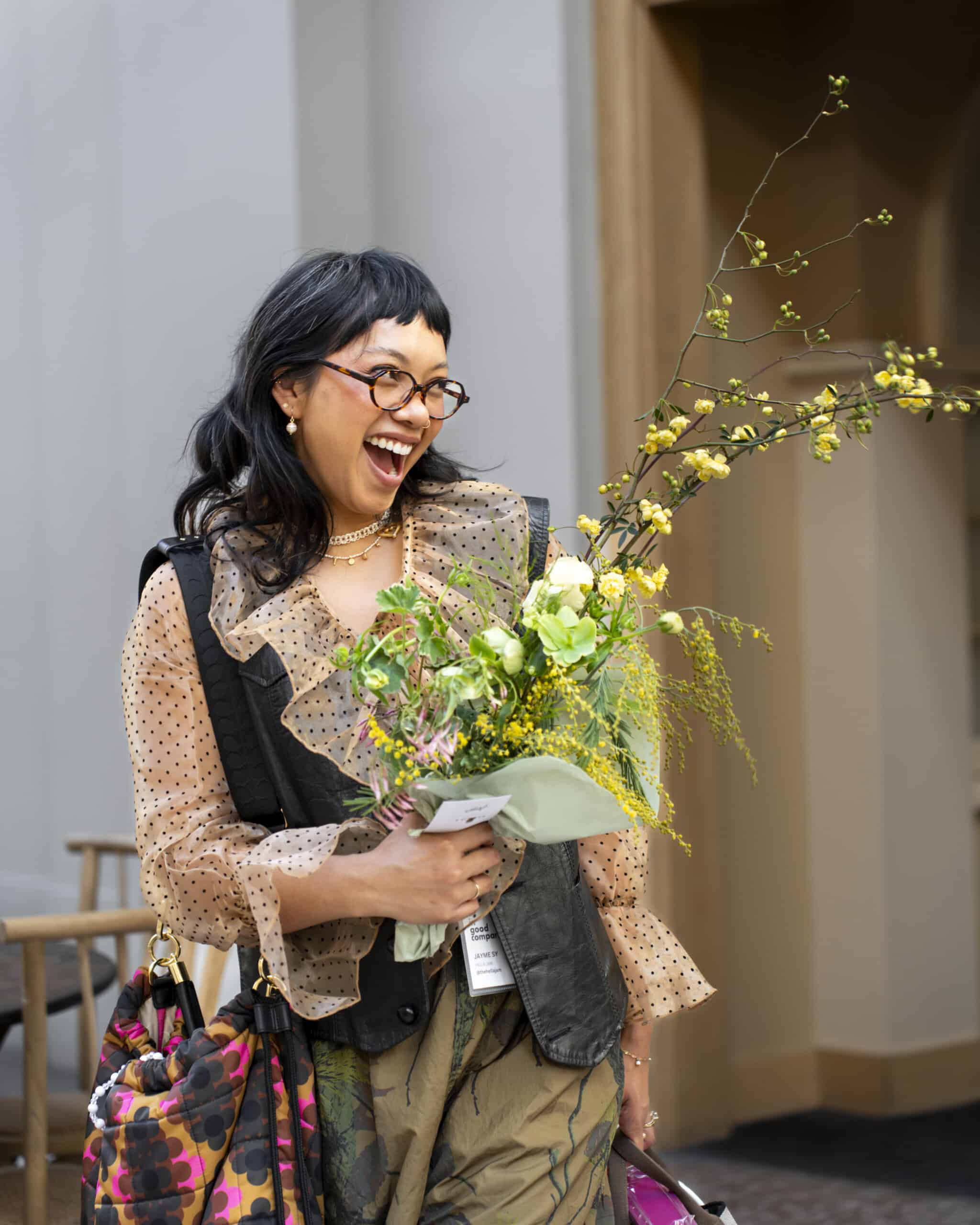 - Jayme Sy with her gorgeous Natalie B. Designs floral creation.